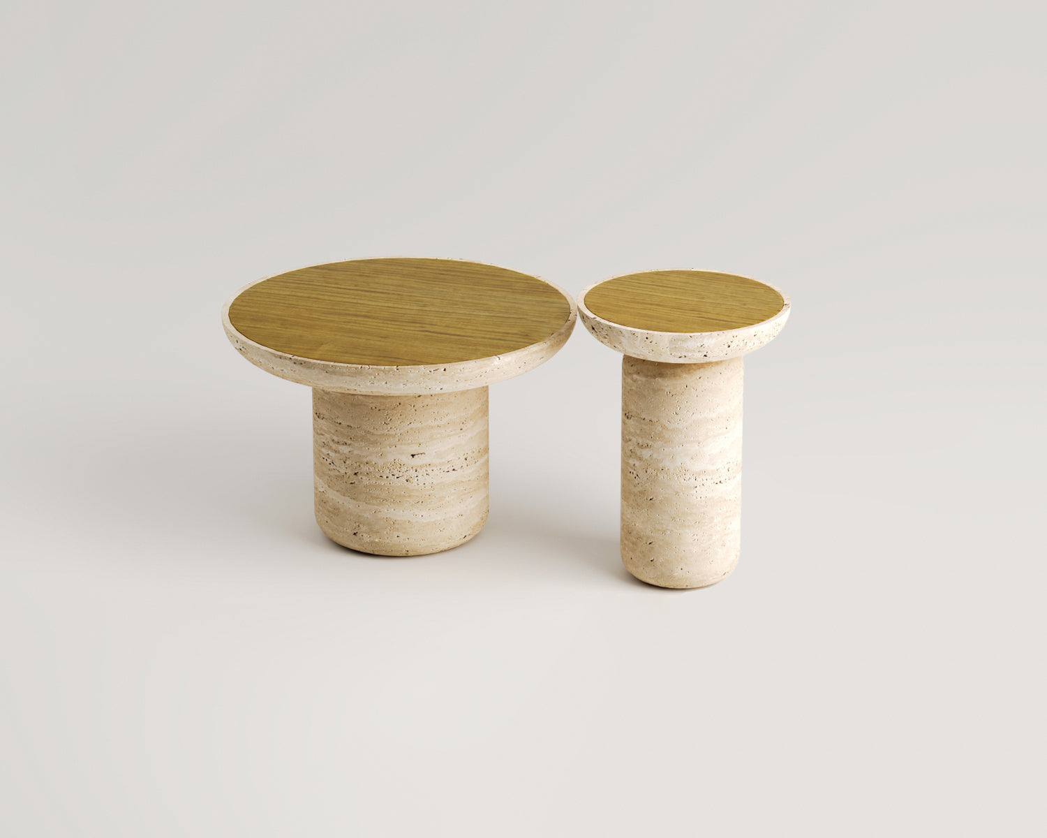 Aidios-Kestane Kaplama Traverten İkili Sehpa