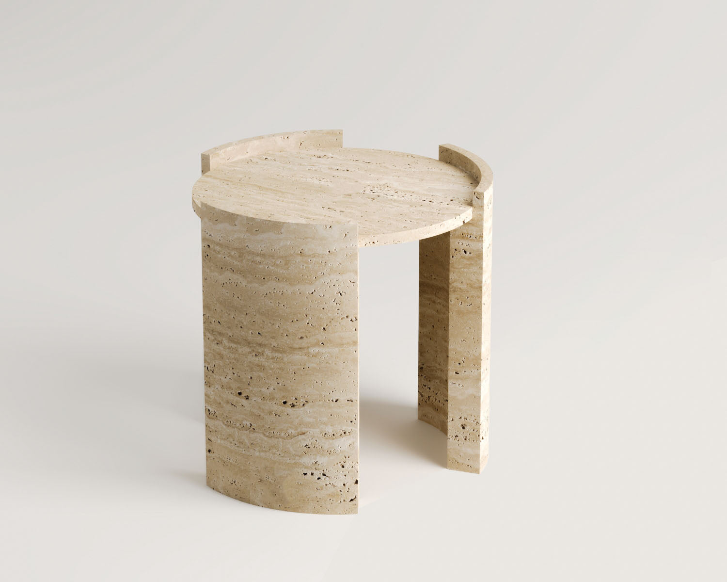 Aura-Traverten Radüslü 3 Ayaklı Yan Sehpa